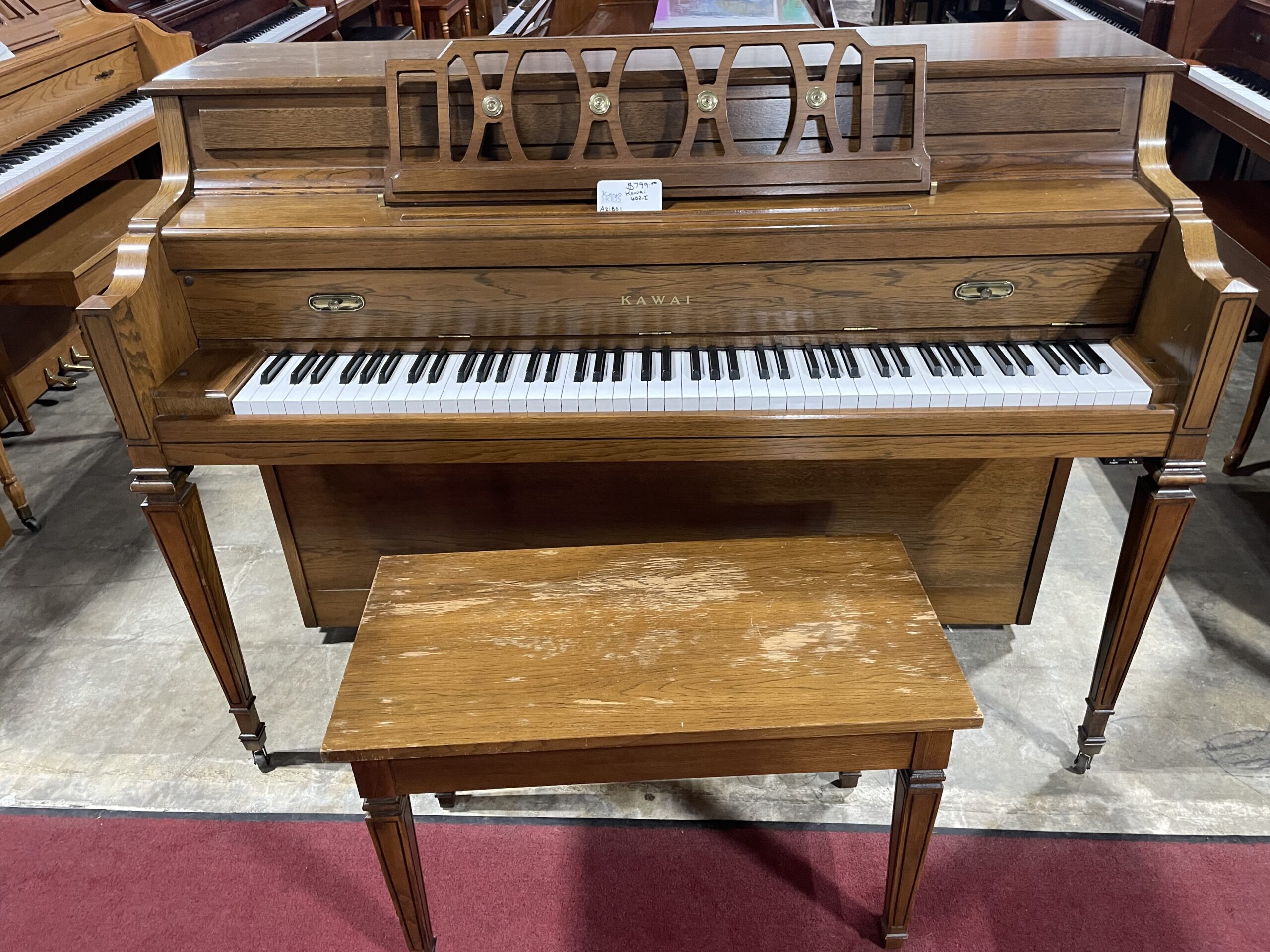 This 90s Kawai console plays great, sounds beautiful. The case has seen better days, which is the reason for pricing. Perhaps not a fantastic piece of furniture, but a great daily player.