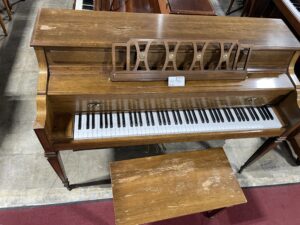 The 1990 Kawai 602-I is a 43.5-inch console piano known for its elegant design and reliable Japanese-engineered components. The “I” in the model name typically stands for Italian Provincial, a furniture style characterized by clean lines and slim, tapered legs, often finished in satin walnut or oak.