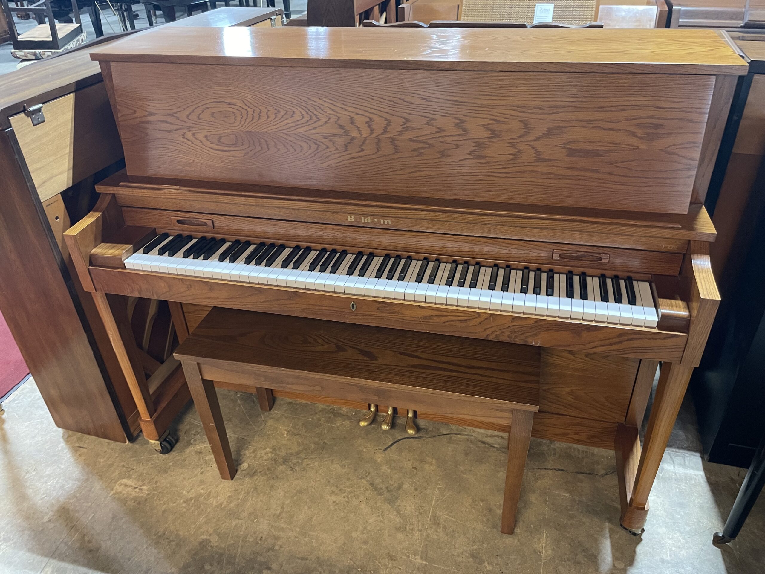 • Action: Features Baldwin’s proprietary “Full-Blow” direct action, known for its responsiveness and faster repetition compared to standard uprights.